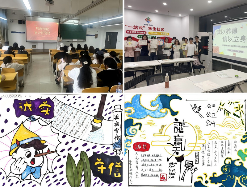 为进一步强化学生的诚信意识,弘扬社会主义核心价值观,管理学院于5月至6月期间,围绕“诚以养德 信以立身”主题,组织开展了一系列形式多样、内容丰富的诚信教育活动。