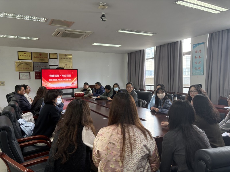 为深入学习贯彻习近平新时代中国特色社会主义思想,强化党建引领专业建设,2026年4月15日,管理学院电子商务系党支部在勤行楼B506举办“党建赋能·专业强基”支部巡礼主题党日活动,学院全体教师党员共同参与。