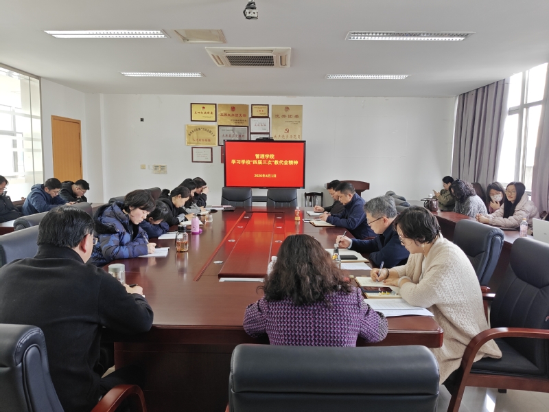 为深入贯彻落实学校党委最新工作部署,统一思想、凝聚共识,4月1日,管理学院在勤行楼B506召开专题会议,传达学习学校2026年度全面从严治党暨党风廉政建设工作会议精神,以及学校“四届三次”教职工代表大会精神。学院全体教职工参加了会议。